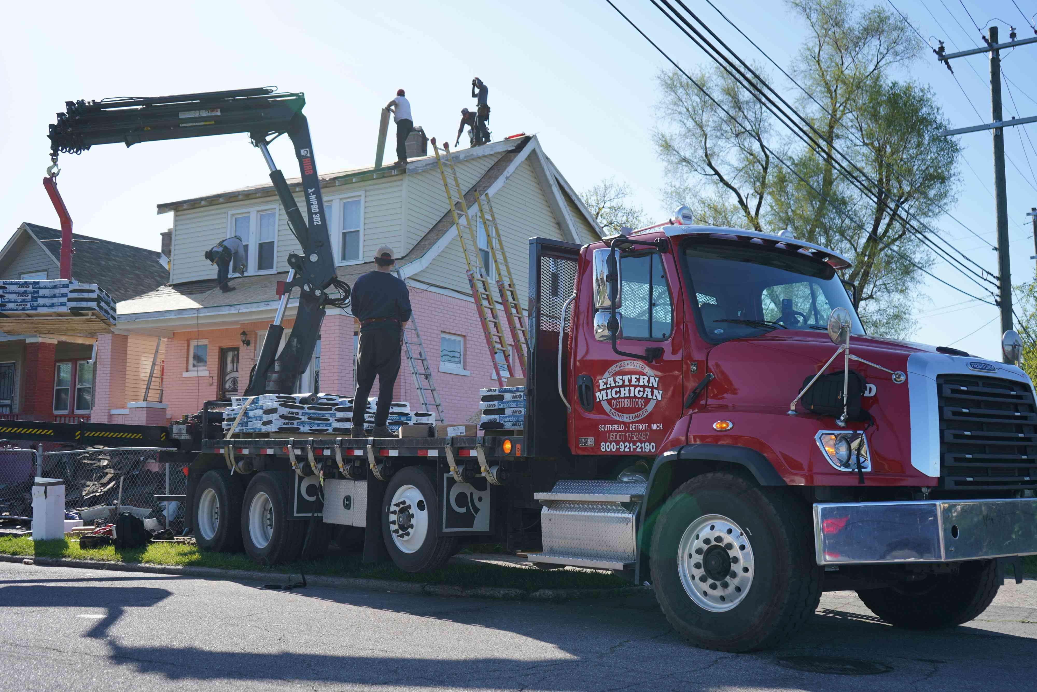 Once you’ve had us deliver all your roofing supplies directly to the roof, you’ll never want a ground-drop delivery again! Our trucks allow us to deliver onto any rooftop up to 5 stories high.